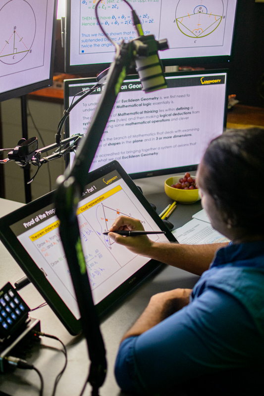 Live sessions are broadcast from our professional streaming studios specifically setup to deliver high quality online classes. Each studio is setup with a full HD webcam, a professional broadcast quality microphone, professional lighting, a drawing tablet display and specialised visualisation software.